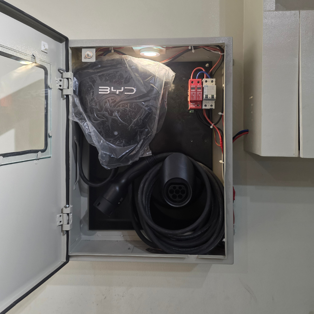 For convenience and functionality, the box features a built-in internal light with door switch, making operation and maintenance easier in low-light indoor parking areas. The integrated base plate ensures secure charger mounting, while the easy cable management system keeps wiring organized and clutter-free. Its water resistant design makes it suitable for indoor garages and parking areas where moisture protection is essential.