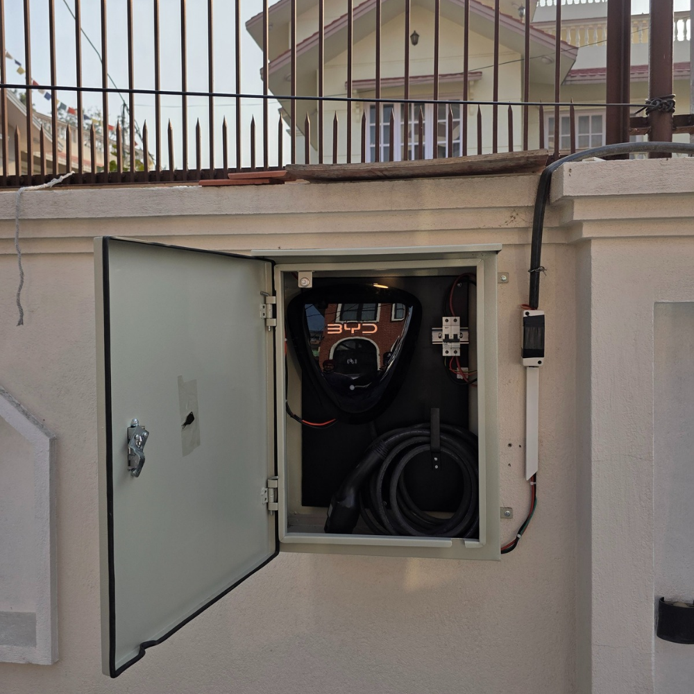 KAVACH PREMIUM is a high quality outdoor EV charger metal box designed to protect your electric vehicle charger from weather, dust, and electrical risks. Proudly made in Nepal. It is ideal for home parking, commercial buildings, apartments and outdoor EV charging installations.